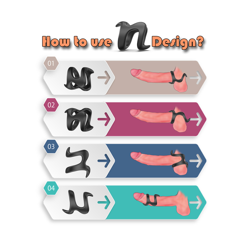 Naudojimo instrukcijos: Pradėkite nuo kruopštaus valymo. Tada ant varpos koto, silikono žiedo, užtepkite daug vandens pagrindu pagaminto lubrikanto, kad užtikrintumėte patogumą ir patogumą. Statydami švelniai nustumkite žiedą žemyn iki veleno pagrindo. Kombinuota stimuliacija gali būti naudojama iki kulminacijos.